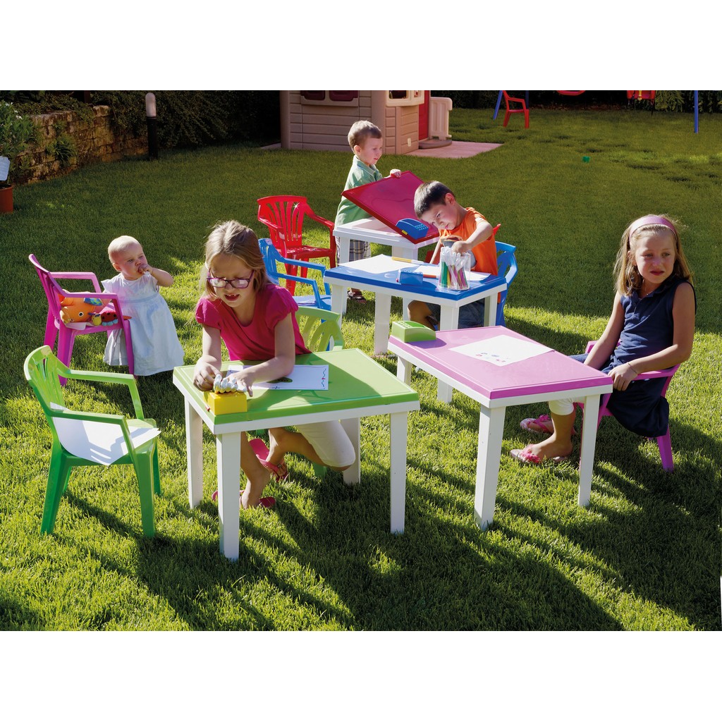Seggiola in polipropilene per bambini colorata e impilabile.