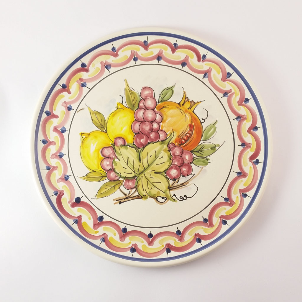 Piatto Murale artigianale in terracotta smaltata della collezione maioliche pugliesi. La Puglia offre una vasta gamma di prodotti caratteristici, come le stoviglie in ceramica, create con stampi classici caratterizzate dal galletto tipico pugliese contornato dalle stellette, simbolo ufficiale delle ceramiche e terracotte pugliesi. Piatto 10 cm: 10x10x1,5 h Piatto 24 cm: 25x25x3 h Piatto 30 cm: 30x30x1 h Piatto 37 cm: 37x37x5 h - La decorazione potrebbe cambiare in base alla produzione artigianale.
