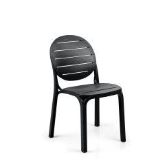 Sedia impilabile senza braccioli, in polipropilene con fibra di vetro, dotata di piedini antiscivolo. Sedia adatta anche per allestire meeting e conferenze grazie alla possibilità di affiancarle e unirle con distanziali. Finitura opaca.