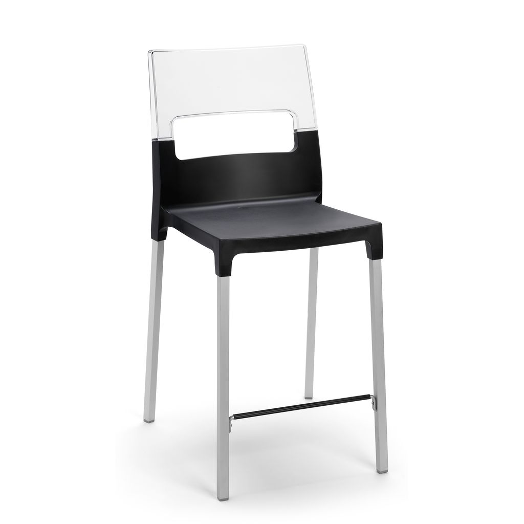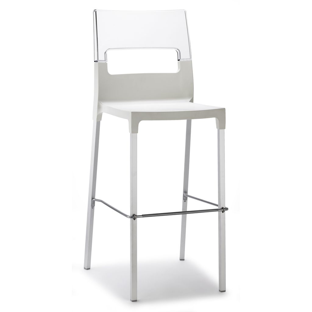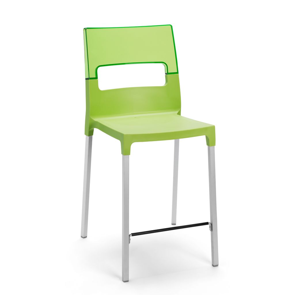 Seduta in tecnopolimero rinforzato con fibra di vetro. Schienale in policarbonato trasparente. Gambe in alluminio anodizzato a sezione quadrata da mm. 22x22. Impilabile. Disponibile in diversi colori e due altezze. Adatto all'ambito domestico ma anche per uso esterno. Sgabello Diva h.75: ALT. 112 cm, LAR. 48 cm, PRO. 56 cm, PES. 7,2 kg Sgabello Diva h.65: ALT. 101 cm, LAR. 48 cm, PRO. 56 cm, PES. 5,5 kg